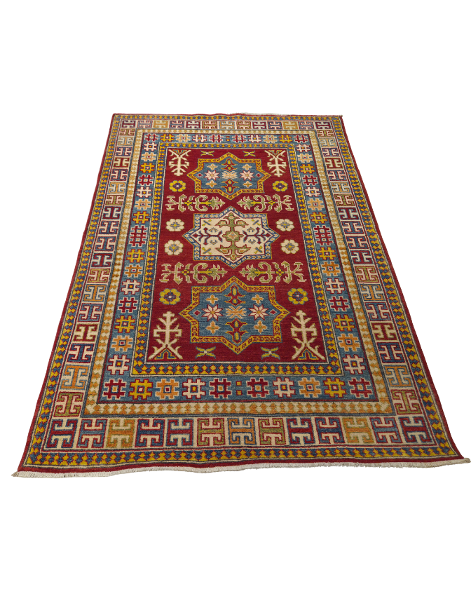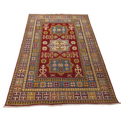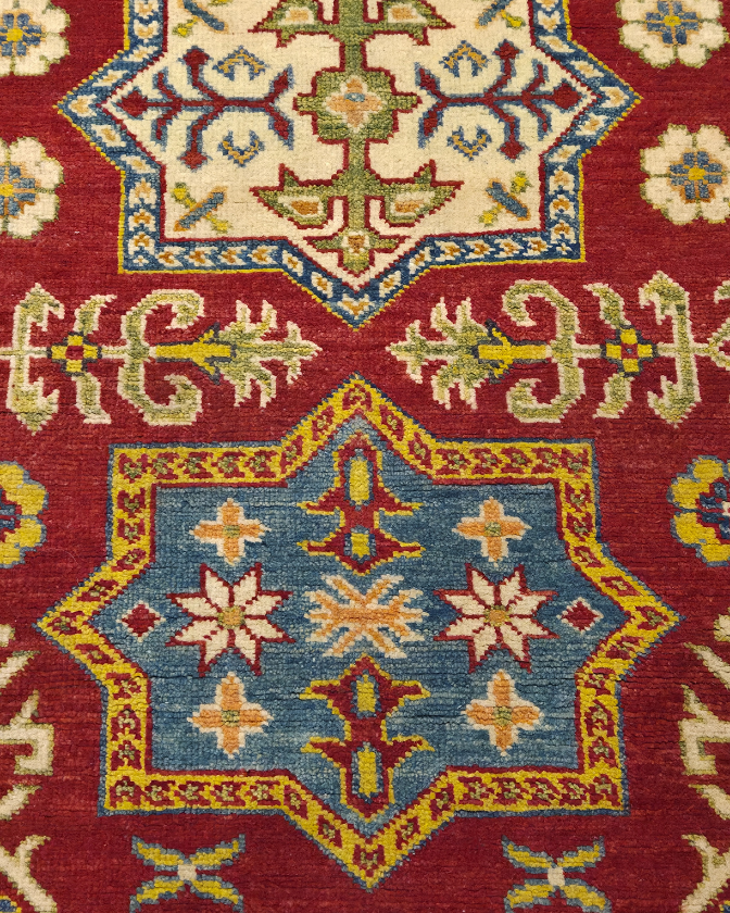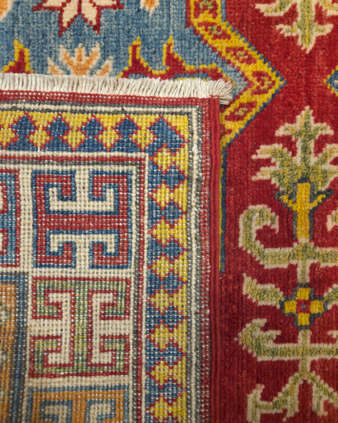TRADITIONAL KAZAK HAND-KNOTTED AFGHAN RUG