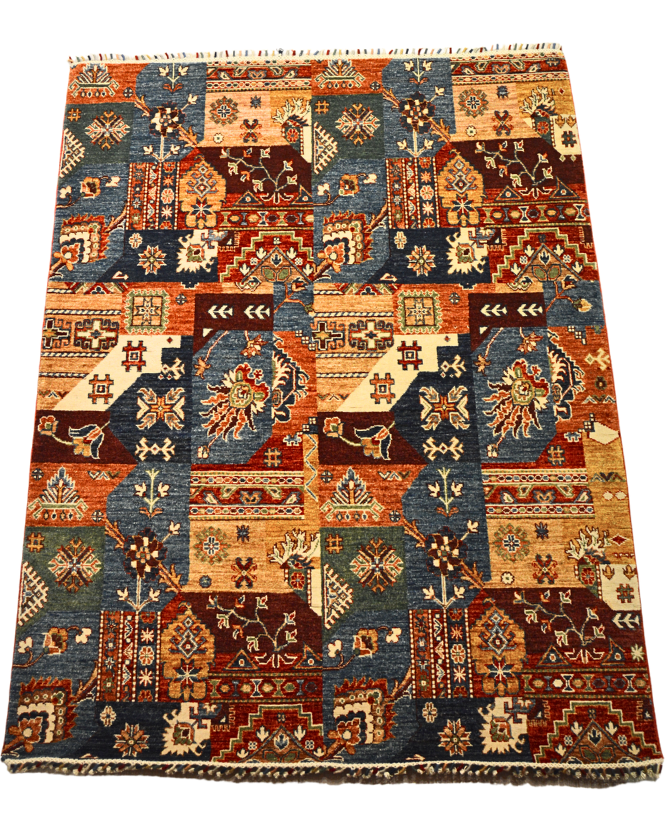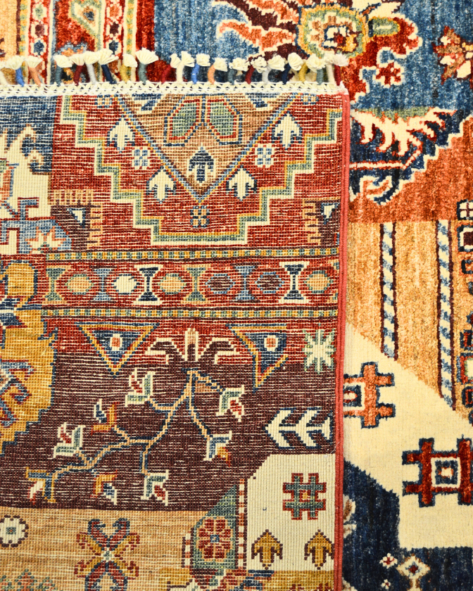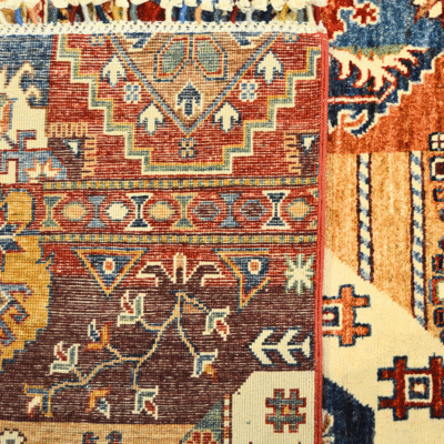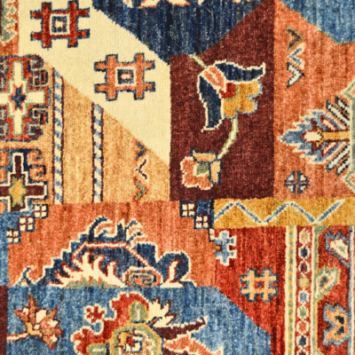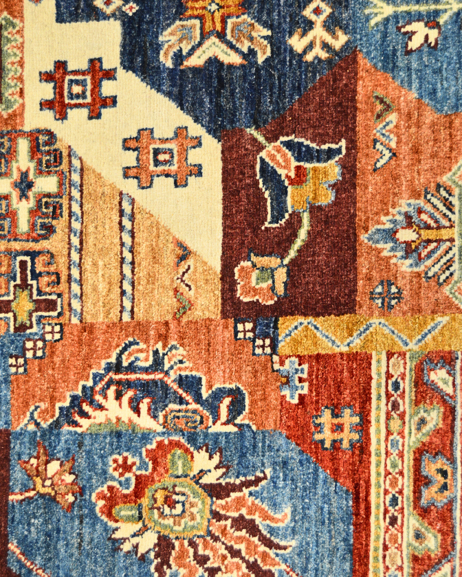PATCH KAZAK HAND-KNOTTED AFGHAN WOOL RUG